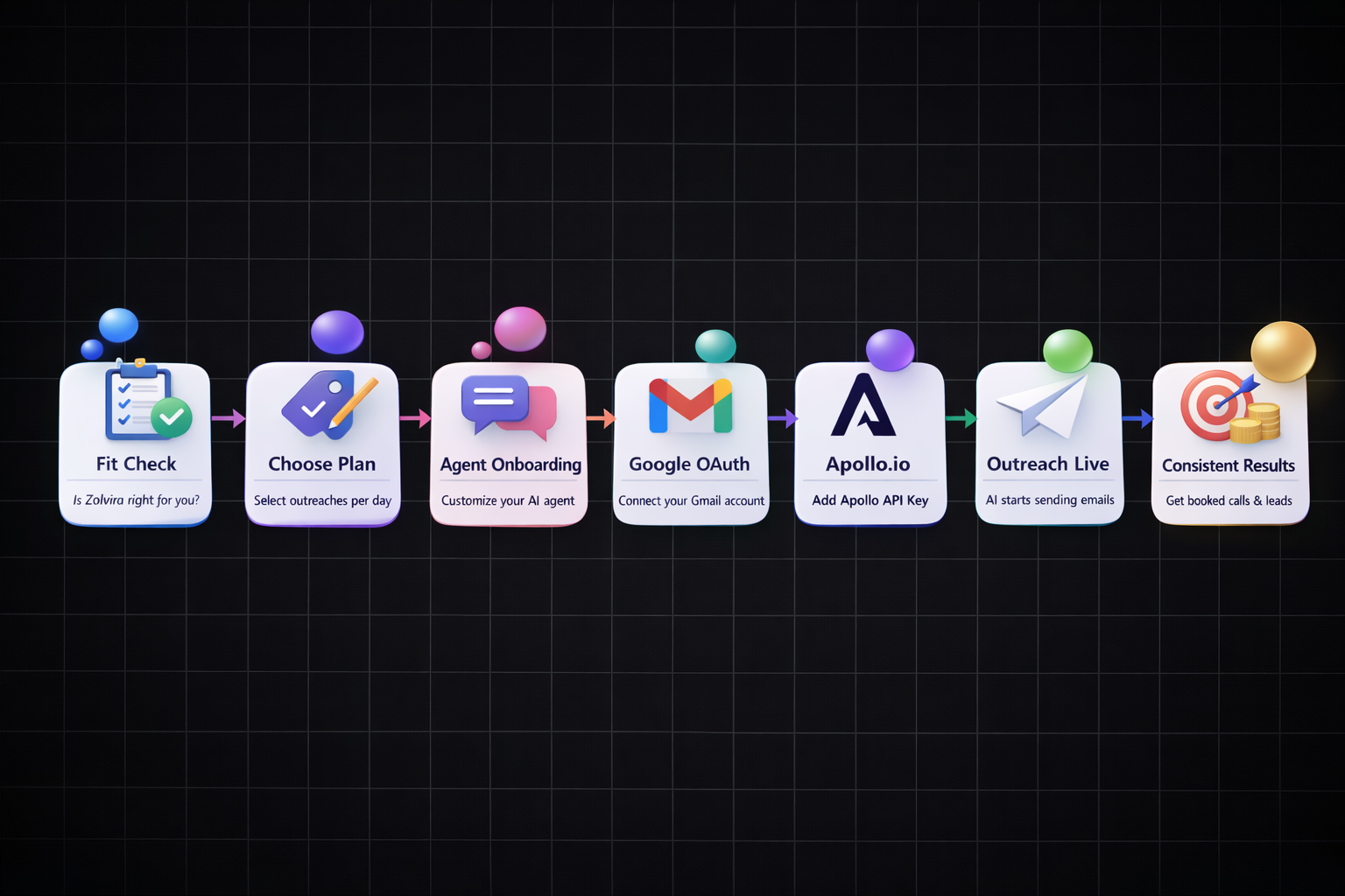 Simply sign in and give permission for Zolvira, LLC to send from your gmail account ONLY to qualified prospects. Quick and secure setup.